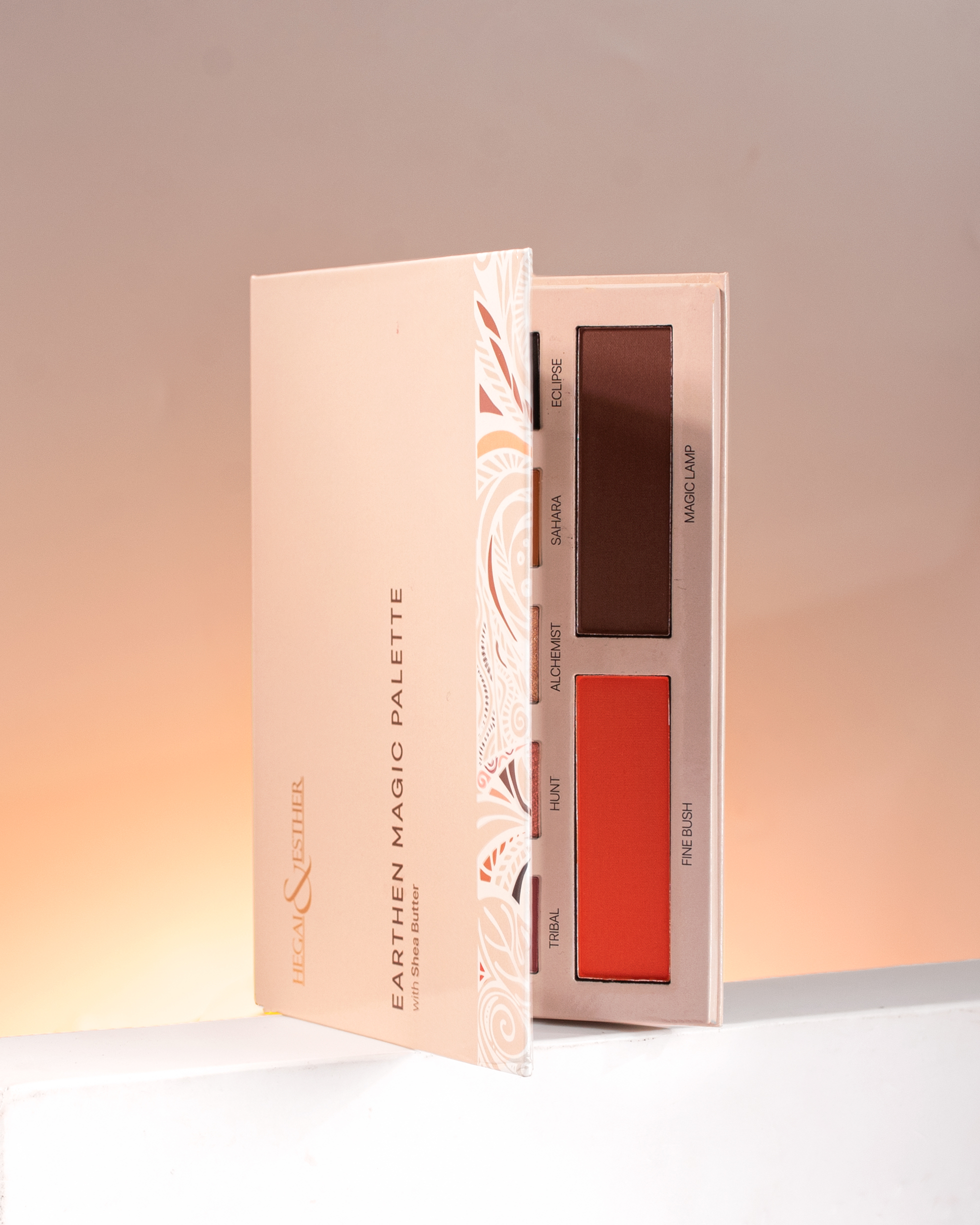 The EARTHEN MAGIC PALETTE features 4 Metallic colors, 6 Matte colors and 2 Satin Blush colors.